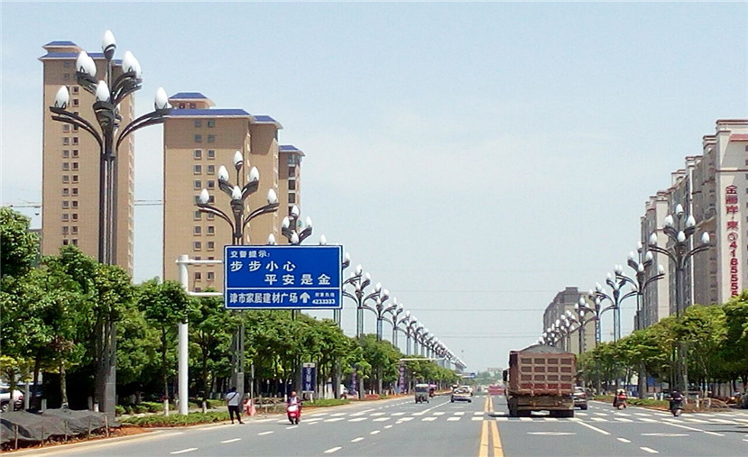 為深入貫徹常德市在十三五規(guī)劃綱要中提出的“一個中心、三個邁進、五個常德”的發(fā)展戰(zhàn)略,加快城市提檔升級步伐,2017年4月,常德市津市九澧大道路進行道路照明改造。四川華體照明科技股份有限公司根據(jù)道路的基本情況,設(shè)計并安裝了15.08米“八叉九火玉蘭燈”。