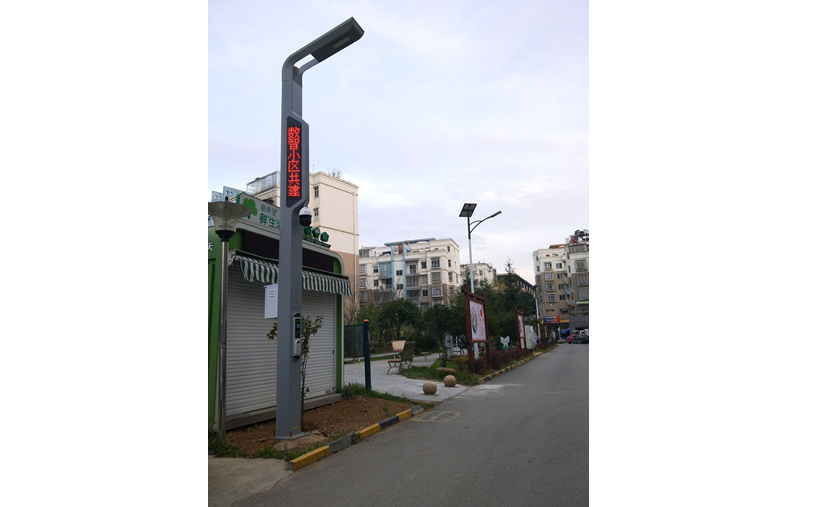華體照明根據(jù)該小區(qū)的實(shí)際情況,為其量身定制的“銀河”智慧路燈整燈高5米,采用LED光源,并根據(jù)客戶需求加載了電動(dòng)汽車充電、LED顯示屏、環(huán)境監(jiān)測、無線網(wǎng)絡(luò)、視頻監(jiān)控、城市廣播等6項(xiàng)功能。