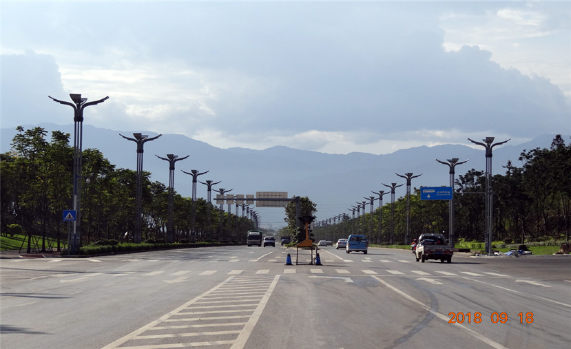 四川華體照明科技股份有限公司(股票簡稱:華體科技 股票代碼:603679)有幸參與到該項目的路燈建設中,為業(yè)主方量身定制創(chuàng)意系列“流光溢彩”路燈近500套。“流光溢彩”燈型設計以簡潔流暢的線條為設計元素,結合現代簡潔的設計手法,提取流暢的線條,燈臂如展翅翱翔的翅膀,寓意城市蓬勃發(fā)展、日甚一日。