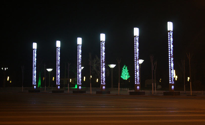 本次景觀照明范圍為新建的四個(gè)中心綠島、人造景觀、綠化景觀、人造雕塑和景石、太白路以及新建道路的功能照明。