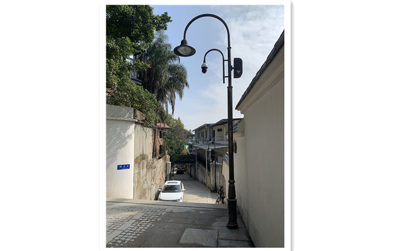 智慧路燈在外觀設(shè)計上,采用歐式風(fēng)格,將煙臺山街區(qū)中西文化碰撞交融的歷史文化底蘊很好地呈現(xiàn)了出來,讓路燈也成為這個特色街區(qū)里面具有鮮明歷史文化特色的“家具”。
