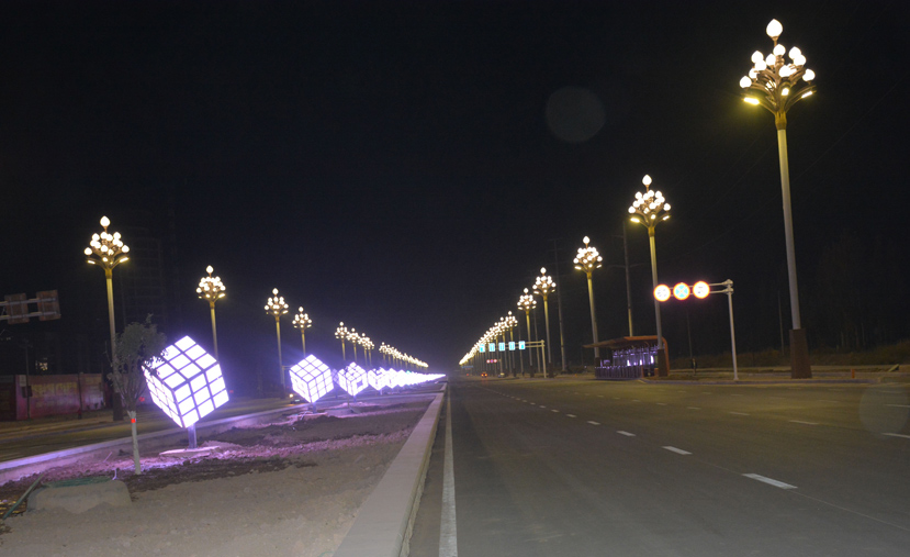 2015年6月,華體照明承接了新疆哈密市區(qū)主要道路路燈改造工程,該工程歷時4個月時間,于2015年10月結(jié)束。荔枝中華燈,即“花燈”,指的是多頭,植物造型的燈桿。該款燈在傳統(tǒng)中華燈的基礎(chǔ)上進行了改良,保留其神韻,加入荔枝的元素,巧妙地將荔枝的形態(tài)與花燈完美結(jié)合。為表現(xiàn)哈密為“哈密瓜”之鄉(xiāng)的地域文化,此次燈型設(shè)計為四層荔枝的裝飾光源,從遠處看其外形輪廓酷似哈密瓜,特別是夜間亮燈后,更是形態(tài)逼真,不僅為夜間市民的出行提供便利,更加提升哈密的城市形象。