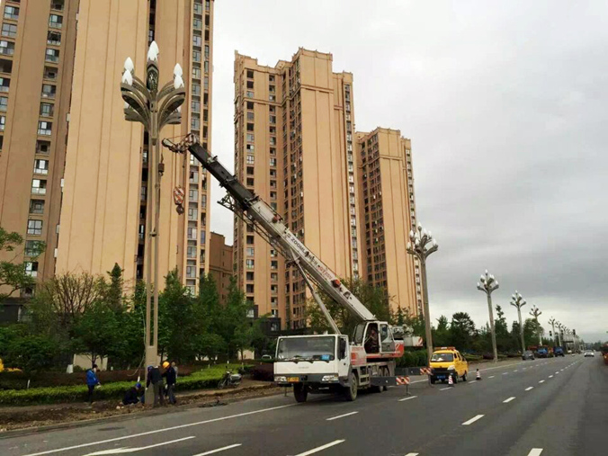 3月29日上午,綿竹市蘇綿大道、回瀾大道路燈改造工程正式啟動。 據(jù)了解,蘇綿大道、回瀾大道的路燈于2004年安裝,距今已有12年,大部份燈組已出現(xiàn)損壞現(xiàn)象。為了營造舒適的人居環(huán)境,提升城市景觀,華體照明積極配合蘇綿大道、回瀾大道路燈改造工程,設計并安裝了16米八叉九火玉蘭燈。