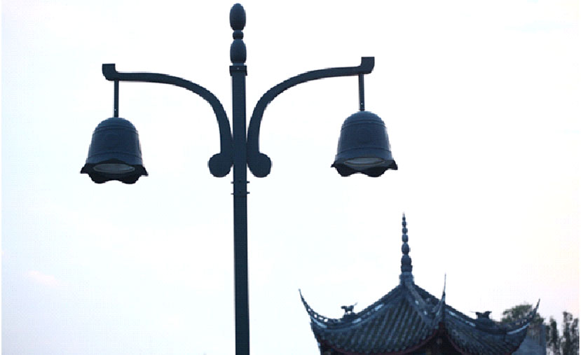 為了配合都江堰旅游富市戰(zhàn)略、體現(xiàn)并提升城市整體形象,四川華體照明科技股份有限公司在都江堰道路燈改造和提升項目中,根據(jù)都江堰“水”、“道家”、“歷史古建筑名城”等文化元素進行個性化設(shè)計了一款文化定制景觀燈——“古鐘燈”。