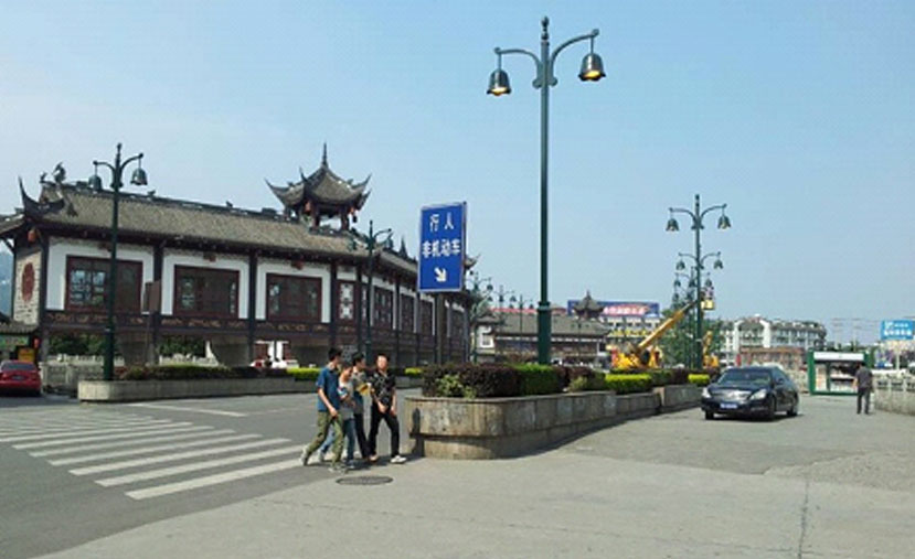 燈頭具有典型的古鐘造型特點,又借鑒典型的古建筑屋頂造型運用于燈臂、燈頂中,使之與燈桿連接,造型獨特、自然、美觀。該項目中,運用了墨綠色和古銅色兩種顏色的古鐘燈,反映了都江堰厚重的歷史文化及綠色生態(tài)旅游城市特點。桿體方面,為矩形單桿,造型簡潔大方,立體感強。光源方面,采用了高壓鈉燈,巧妙的設(shè)置于古鐘內(nèi),實現(xiàn)了功能性與景觀性兼顧??傊?,景觀燈“古鐘燈”運用于古文化濃厚的文化名城內(nèi),有效的與周圍建筑環(huán)境及文化融合,提升了城市品位,增加了市民的城市歸宿感、自豪感,增強了市民的文化自信,為添彩美麗都江堰,做出了重要貢獻。