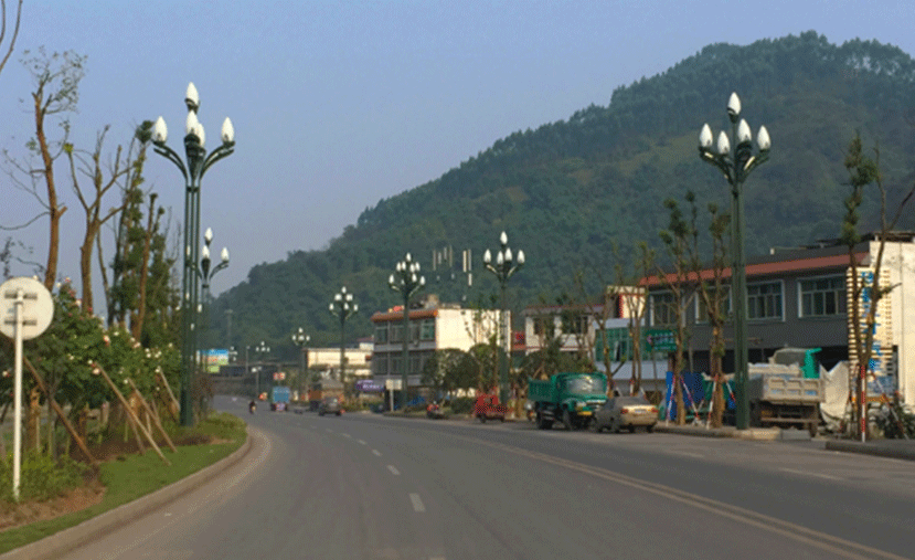 該燈體顏色也根據(jù)宜賓珙縣區(qū)域性進(jìn)行了定制,提取于蜀南竹海的翠綠竹色元素,呈現(xiàn)墨綠色,與道路兩旁的翠竹交相輝映。燈是傳遞光明的使者,安于珙縣迎賓大道的四叉五火玉蘭燈,歡迎來(lái)五湖四海的游客,可愜意的觀光蜀南竹海的幽深、清麗、秀雅的大自然之美。
