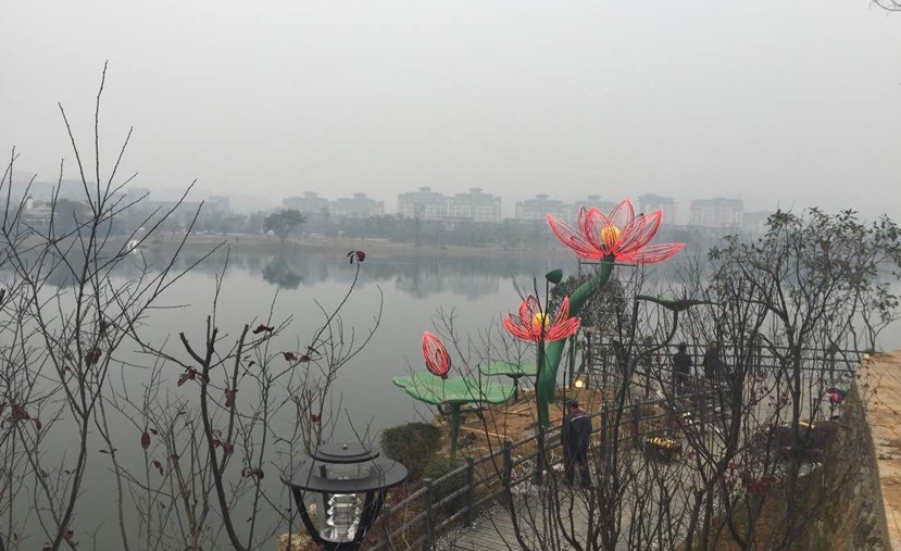 在峨秀湖旁,“蓮花”燈光小品沐浴在晨曦和黃昏中,遠遠望去如栩栩如生的蓮花,形成一抹風景水彩畫,點綴著峨秀湖的旖旎風光。