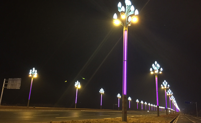 該款燈桿體內(nèi)加裝了節(jié)日氛圍燈,既保留玉蘭燈的美觀外形,又能在節(jié)日中增添祥和的歡樂(lè)氣氛。燈桿底座印有 “天府新區(qū),魅力仁壽” 鮮紅醒目字樣,成為新區(qū)道路的一道亮麗風(fēng)景線。
