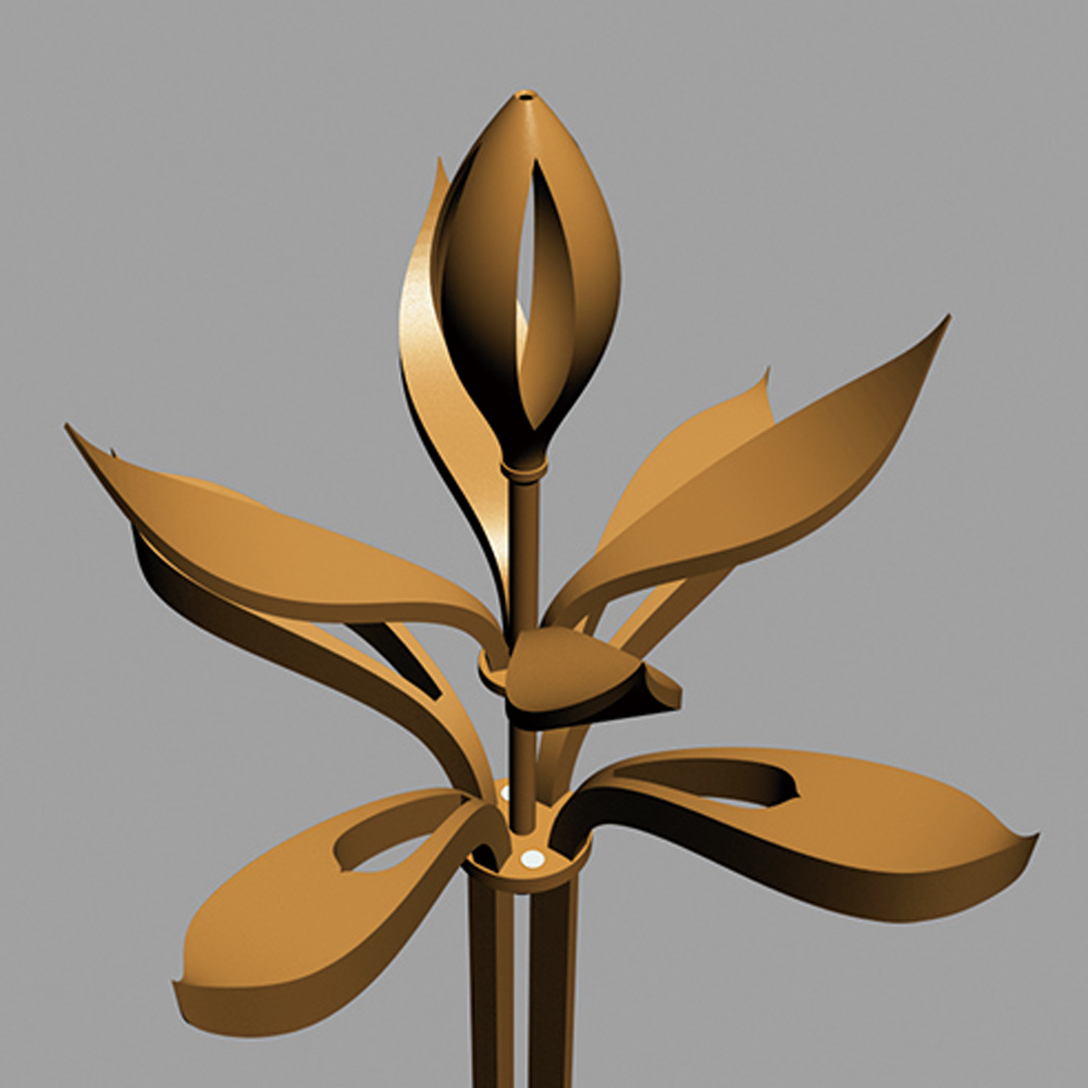 燈具的設(shè)計(jì)主要通過花卉造型進(jìn)行抽象設(shè)計(jì)而來,結(jié)合現(xiàn)代工藝轉(zhuǎn)化為集景觀與功能照明為一體的戶外照明工具;