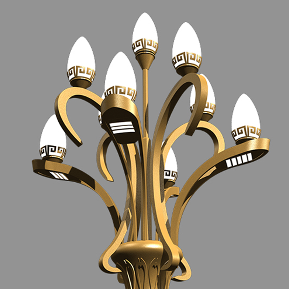 該燈具是傳統(tǒng)道路照明的革新與創(chuàng)新,有濃厚的地域文化特色,顛覆的之前一般燈具的造型單一與無文化特色,在光源方面通過燈具采用設計以綠色照明為主要思路,使該燈具不僅注重人心理上的感受而且綠色環(huán)保、節(jié)能。