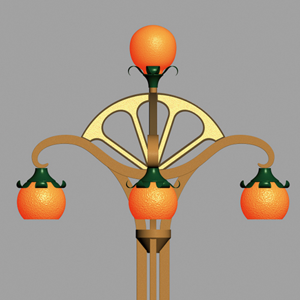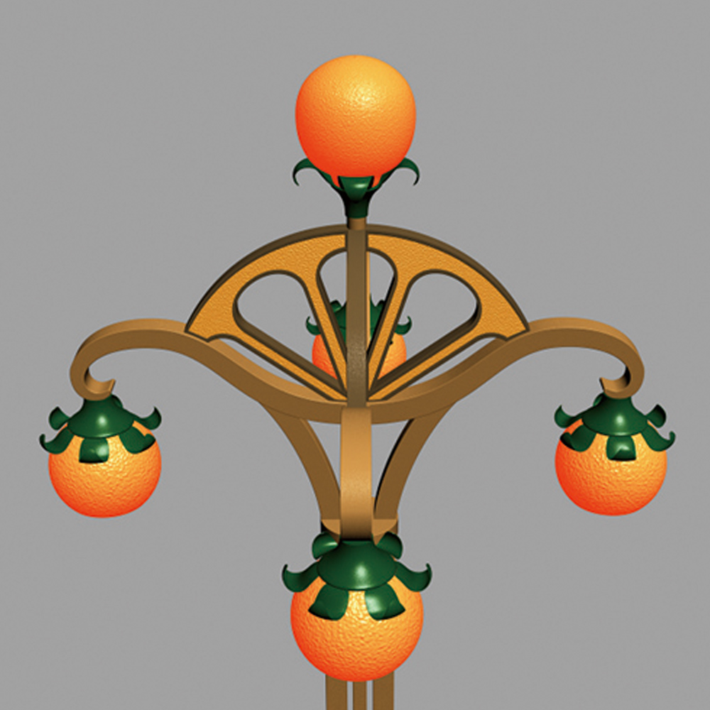 燈型設(shè)計(jì)元素主要來源于柑橘等經(jīng)濟(jì)作物獨(dú)特外型,具象的設(shè)計(jì)靈感,使得燈型更具地方代表性;