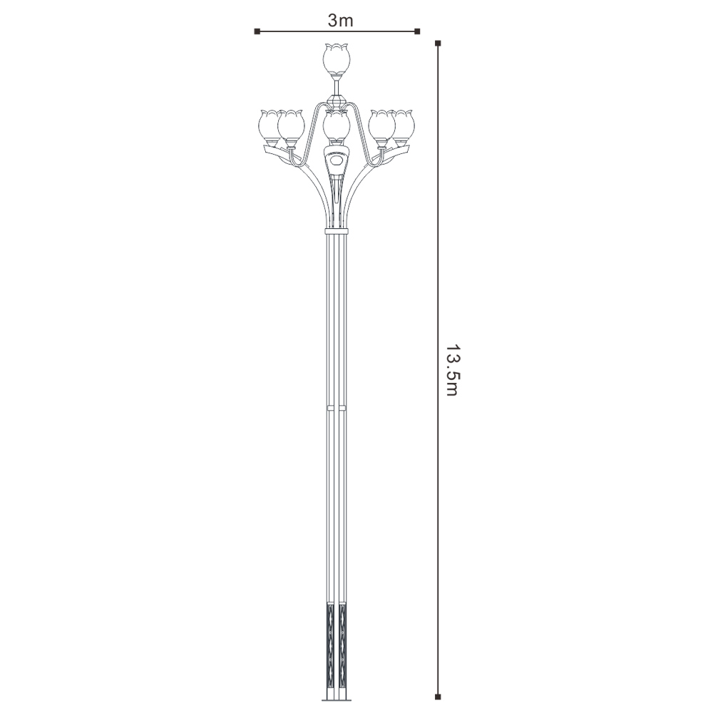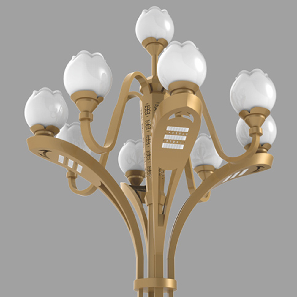 該款燈可以在原有景觀照明基礎(chǔ)上,增加了功能照明,使功能照明和景觀照明完美結(jié)合??蓪ED光源巧妙的配置于戶外文化定制燈具中,替代傳統(tǒng)鈉燈及節(jié)能燈光源,使用革命性創(chuàng)新,在不影響使用及美觀的情況下,降低該類裝飾性景觀路燈的功率密度,切可在桿體內(nèi)側(cè)加裝華體單燈智能照明管理系統(tǒng)。