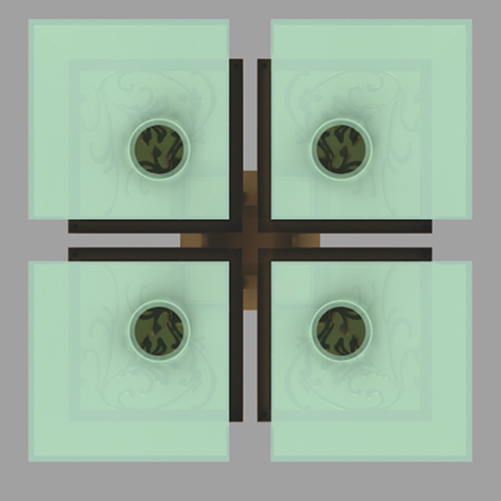 玻璃做成的抽象糧斗造型,搭配傳統(tǒng)鐵花,形成可裝載其他異域文化元素的鏤空花紋,如魚網(wǎng)、臉譜、花草。西昌城市安裝了魚網(wǎng)的鏤空花紋,蘊(yùn)含了此地獨(dú)特的漁家文化。成都的臉譜鏤空花紋造型,宣傳了博大精深的川劇文化;