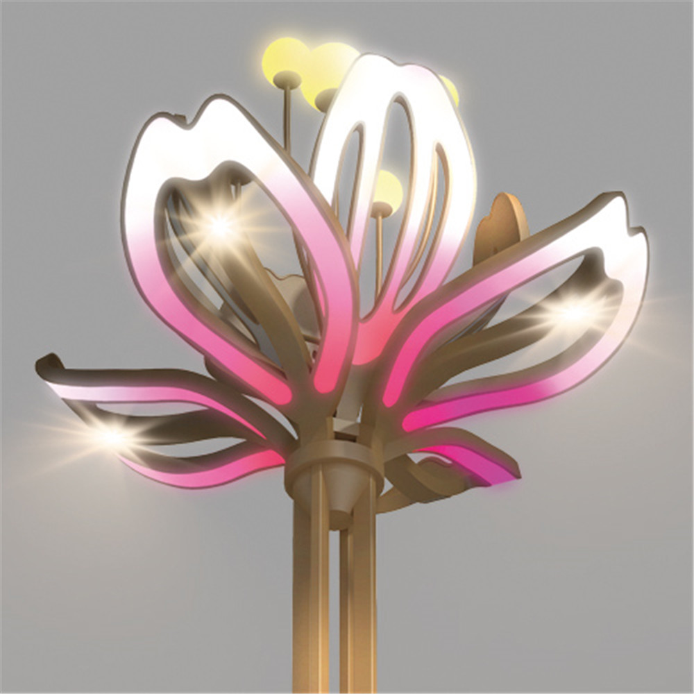 設(shè)計(jì)以五彩繽紛的花朵,襯托城市的華麗。提升城市品位,營(yíng)造絢麗多姿的夜間景觀照明。