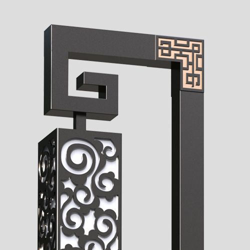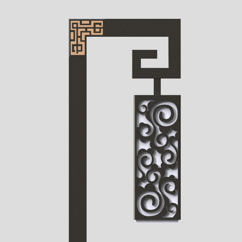 燈型材質(zhì)以優(yōu)質(zhì)鋼材與木紋漆為主,整體燈型采用現(xiàn)代的設(shè)計手法,融入傳統(tǒng)窗花和祥云元素,燈型整體簡潔、現(xiàn)代。