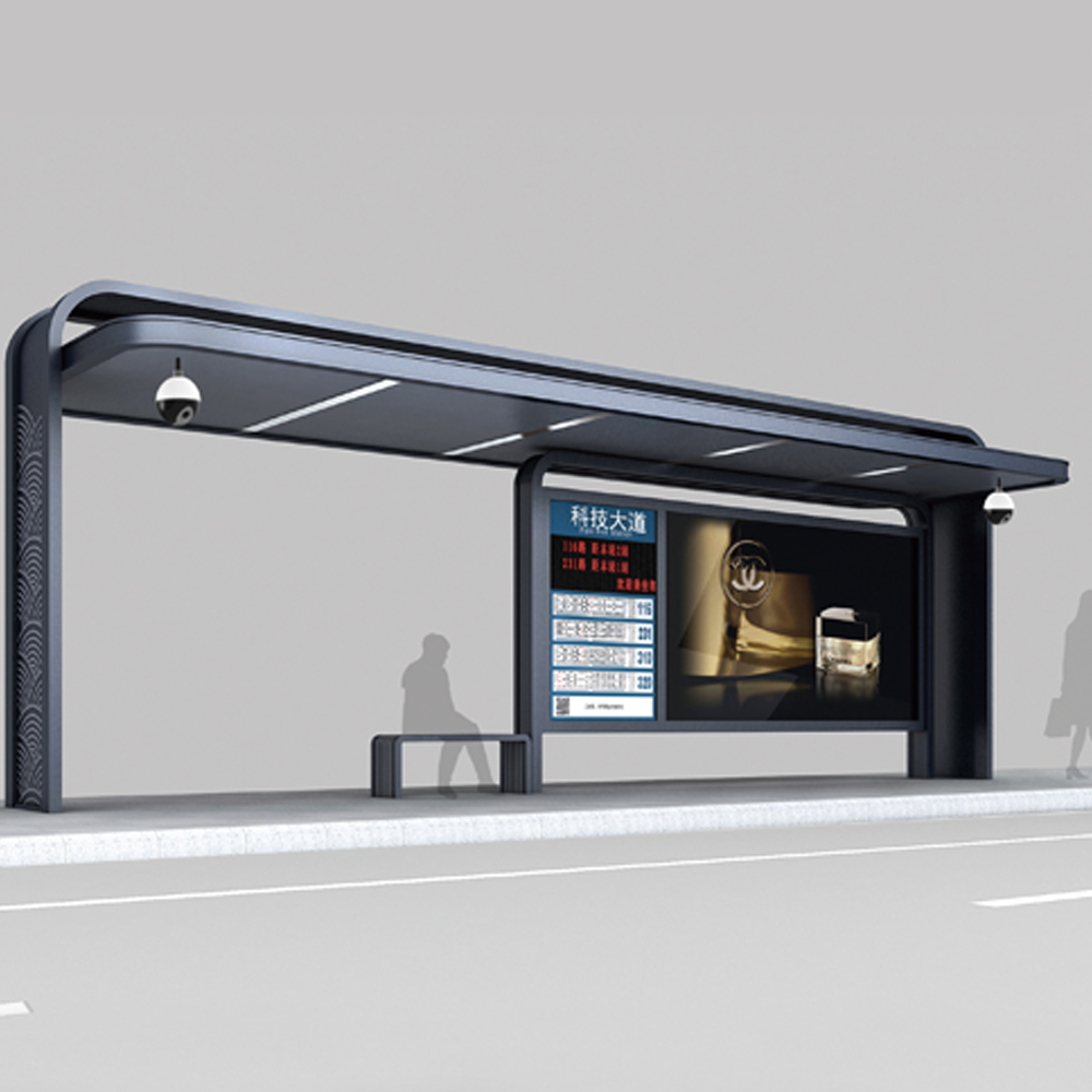 公交車站頂部配有LED節(jié)能燈, 結(jié)構(gòu)美觀, 不容易受損, 壽命時間長, 節(jié)能環(huán)保 。